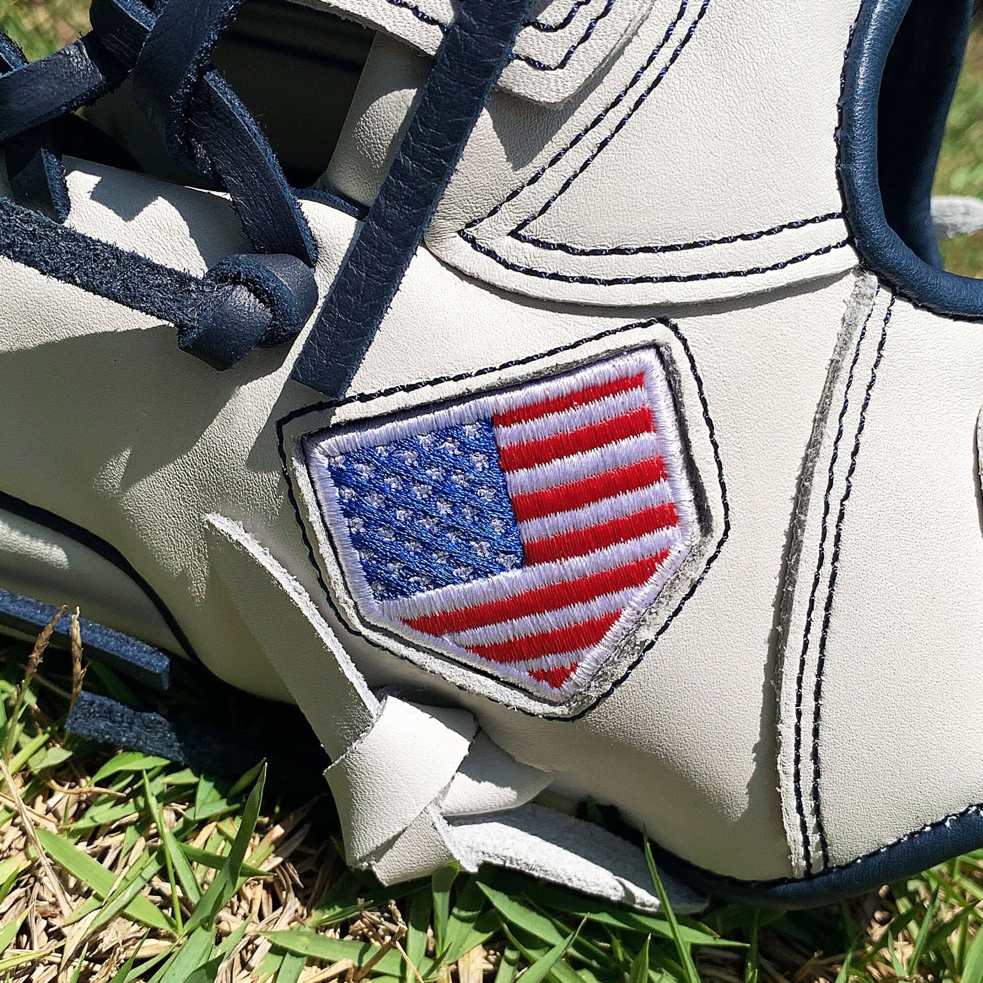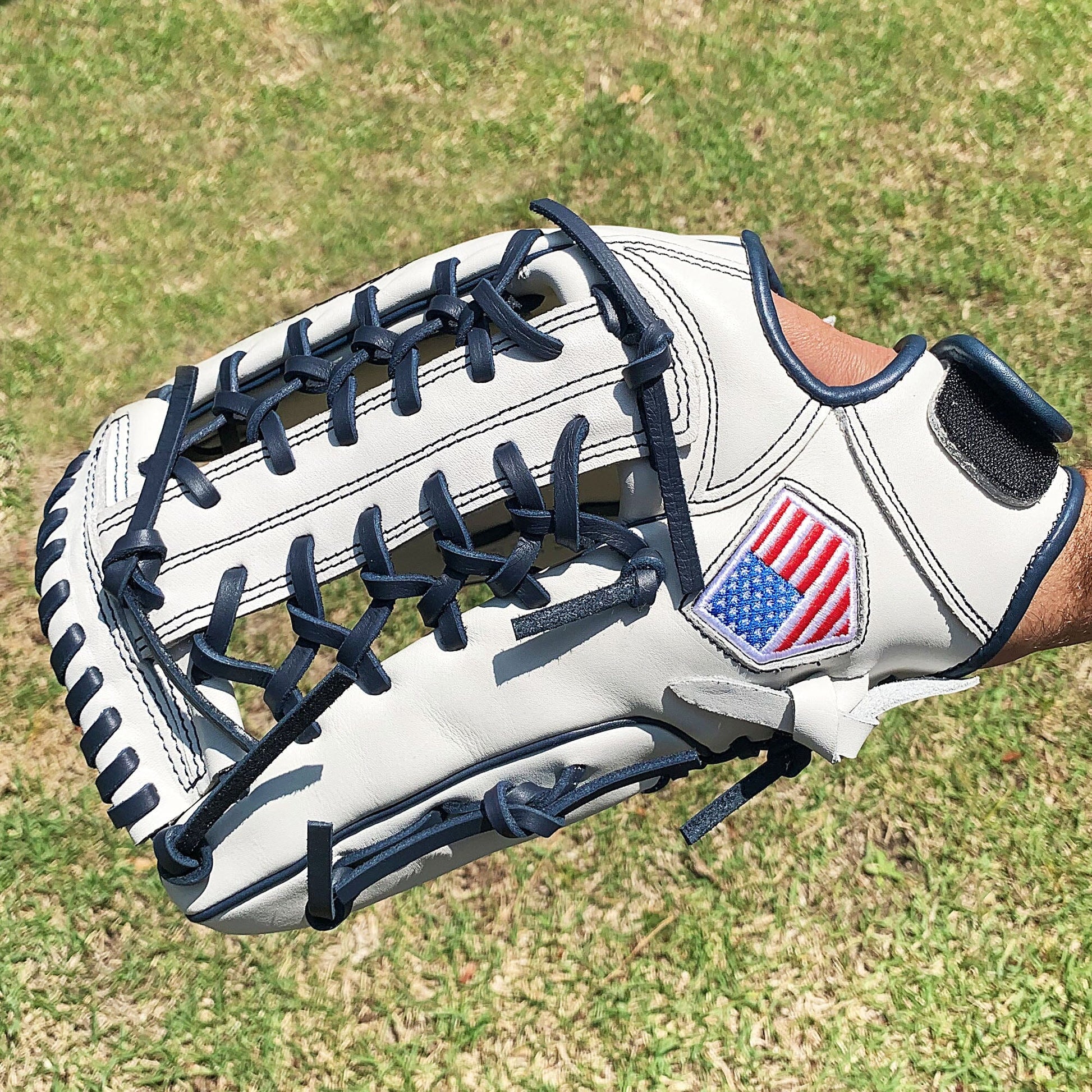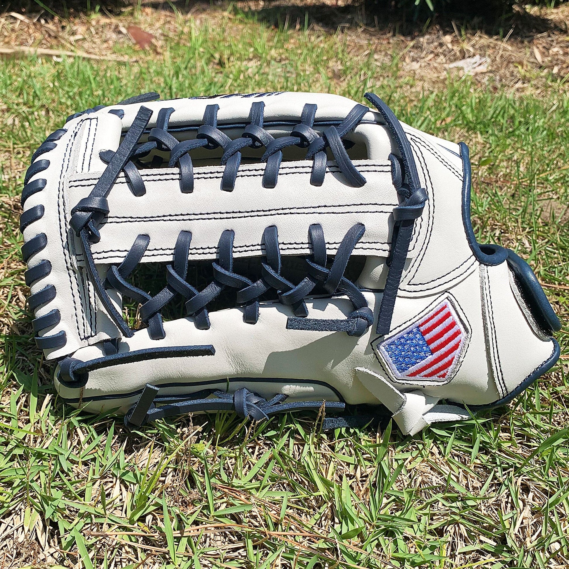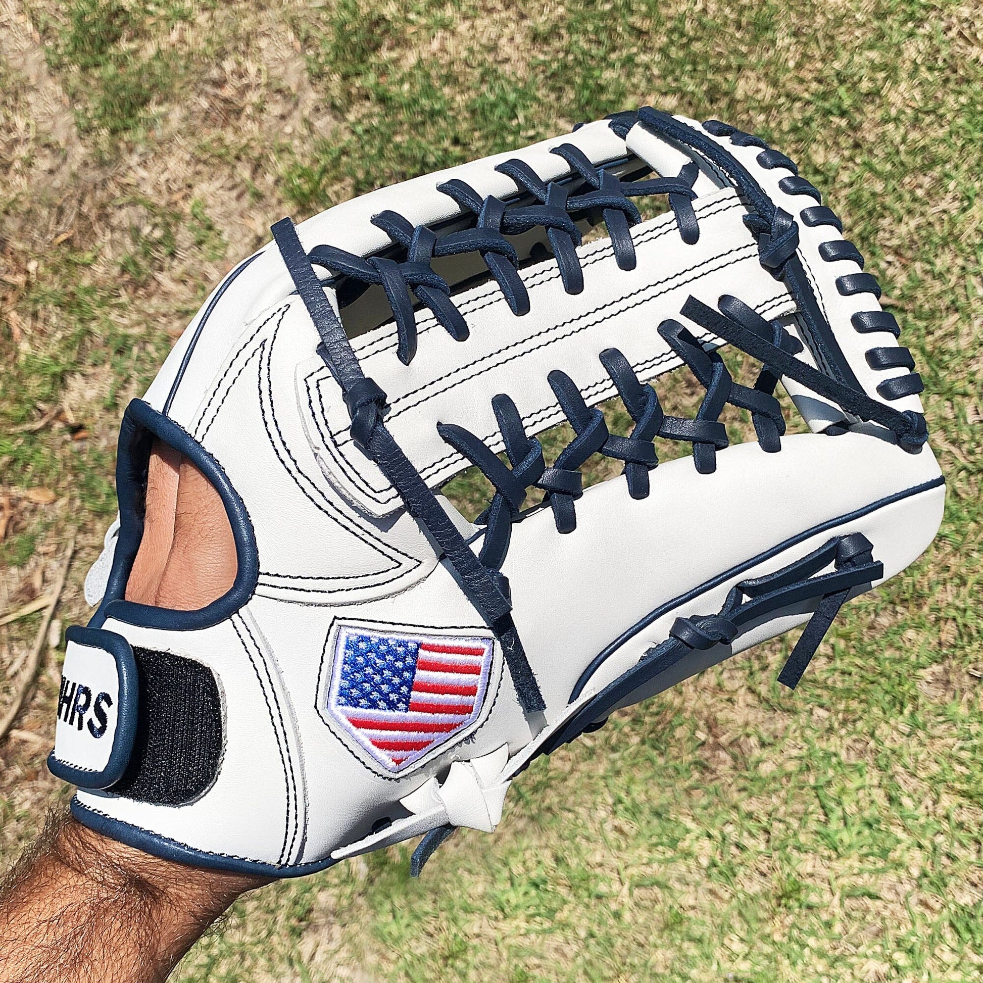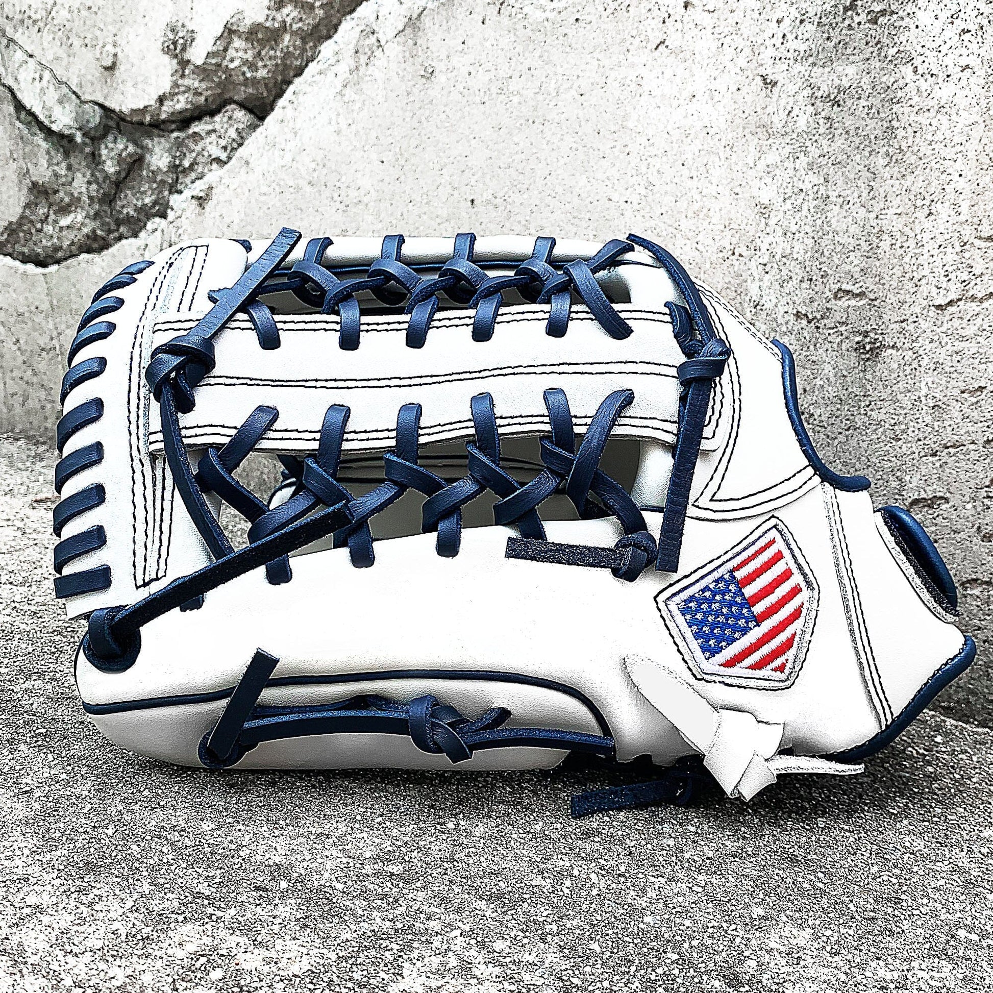 The 13 inch softball mitt is a showstopper with our most popular modified trap web, and white and navy colorway