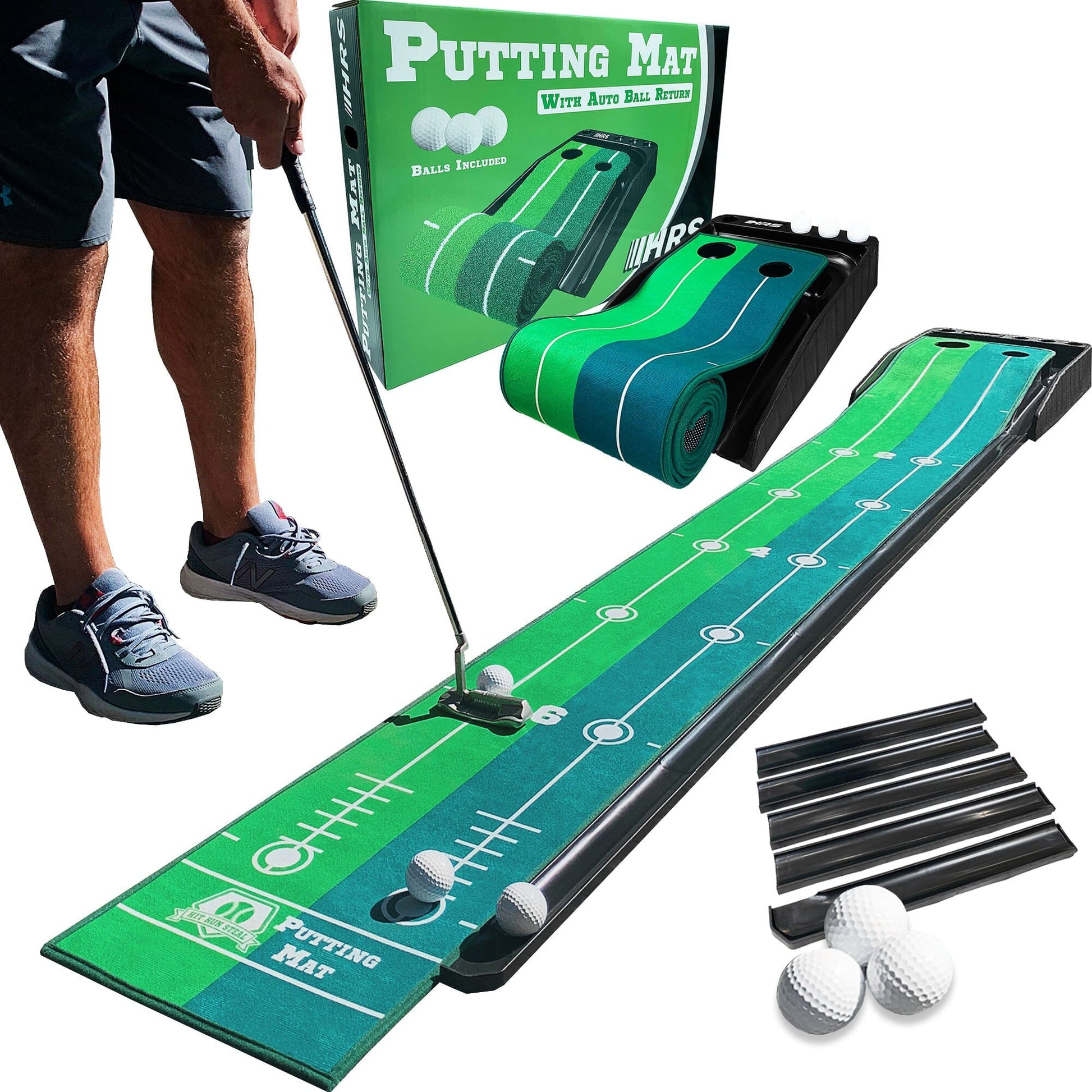 Indoor Golf Putting Practice Green With 3 Golf Balls- Great For Any Indoor Space/Office/Basement/Living Room - Automatic Ball Return