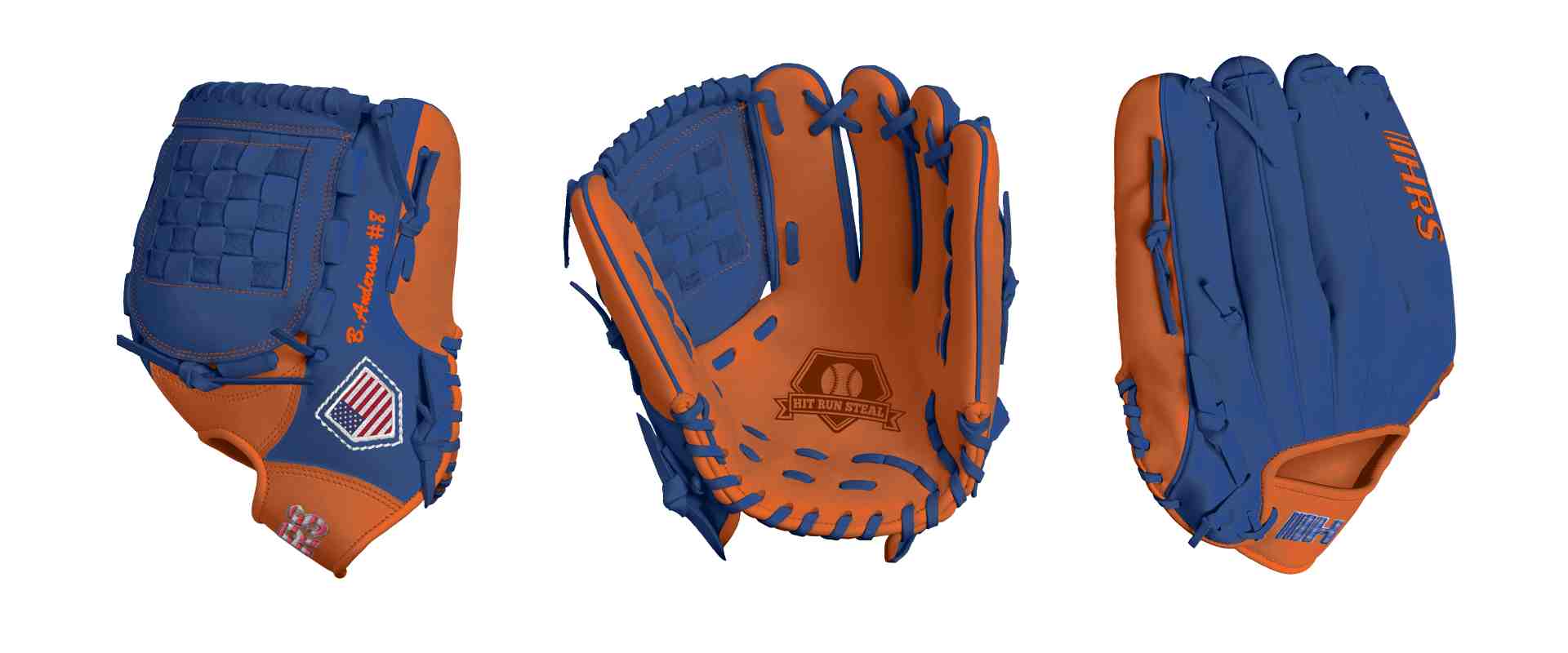 Name on Thumb: B.Anderson #8 (Font Style: Brush Script MT, Font Color: Orange, Patch Color: N/A) | USD 10.00