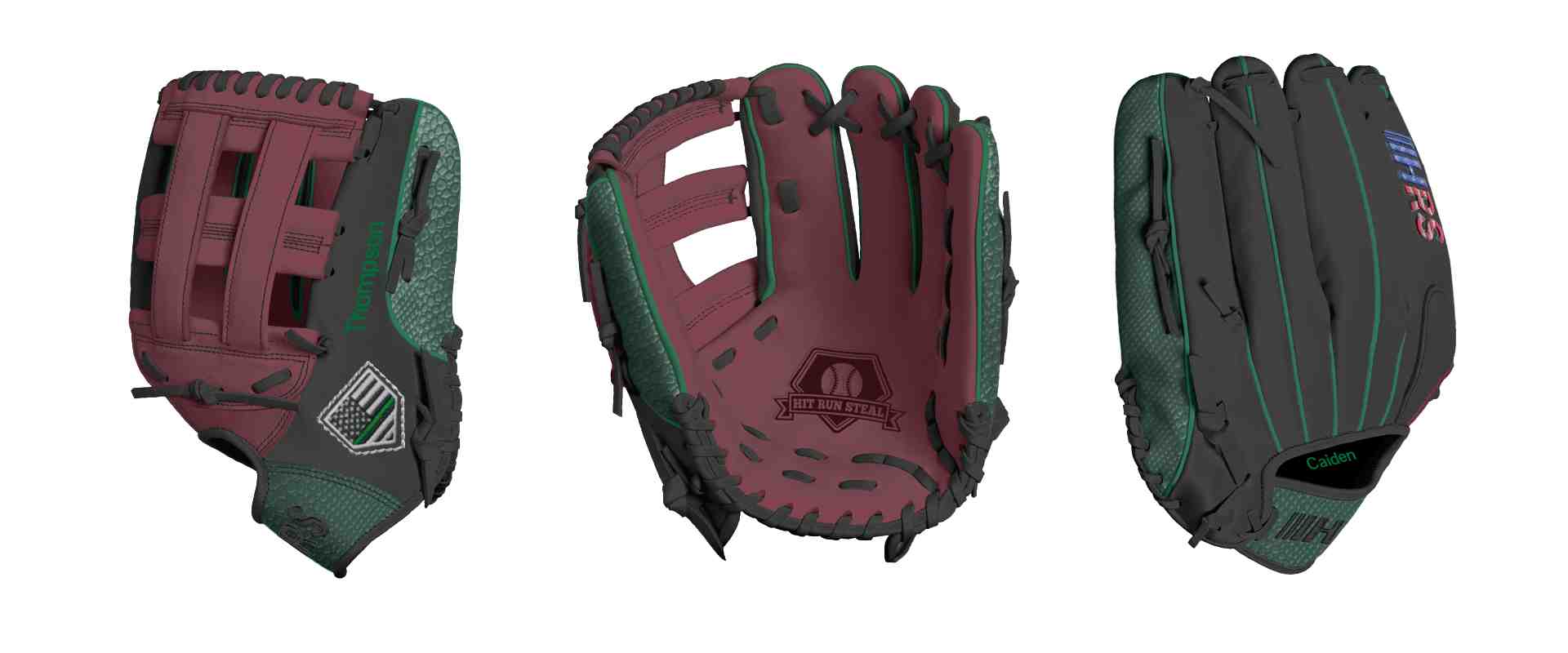 Name on Palm Lining: Caiden (Font Style: Pontano Sans, Font Color: Green, Patch Color: N/A) | USD 10.00